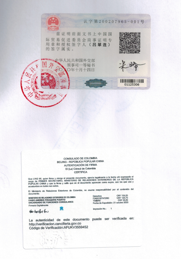 本文鏈接:專注進(jìn)口清關(guān)代理、代理進(jìn)口單證、ATA單證報(bào)關(guān)、臨時(shí)進(jìn)出口代理服務(wù),出口代理,出口報(bào)關(guān)、國際貨運(yùn)代理;請(qǐng)聯(lián)系我們:400-888-0577 。 | 哥倫比亞使館認(rèn)證 | |